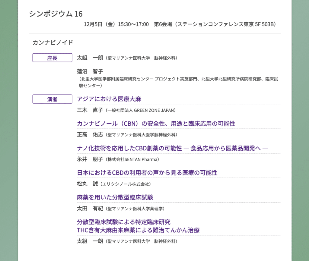 2025年12月5日(金)、6日(土)ステーションコンファレンス東京にて開催される第46回日本臨床薬理学会学術総会にて、5日に弊社代表取締役社長である松丸 誠が、「日本におけるCBD利用者の声から見る医療の可能性」という講演に登壇いたしますので、お知らせいたします。