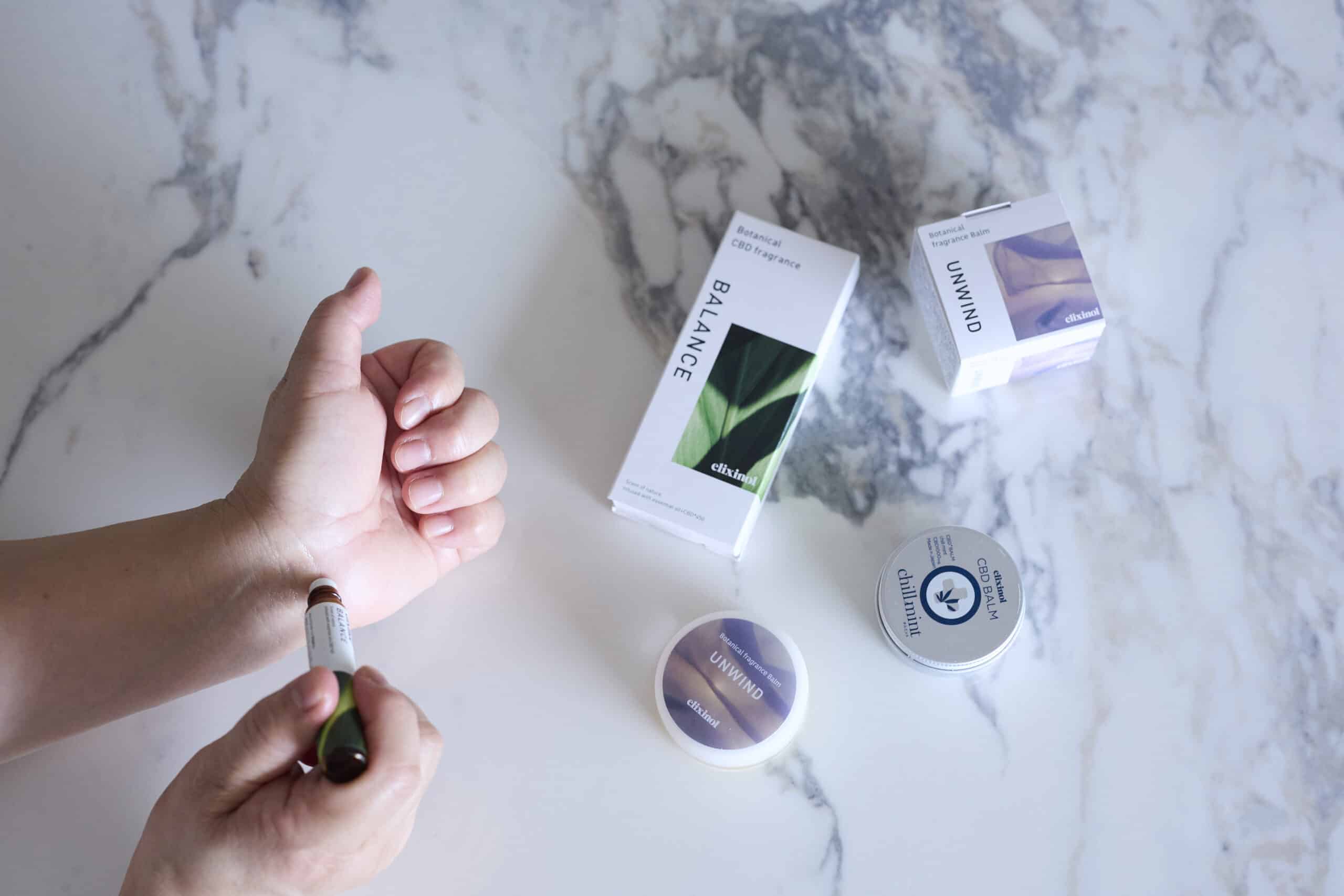 私自身は『ボタニカルCBDフレグランス バランス』と『ボタニカルフレグランスバームUNWIND』、『CBDバーム チルミント』を取り入れることが多いです。