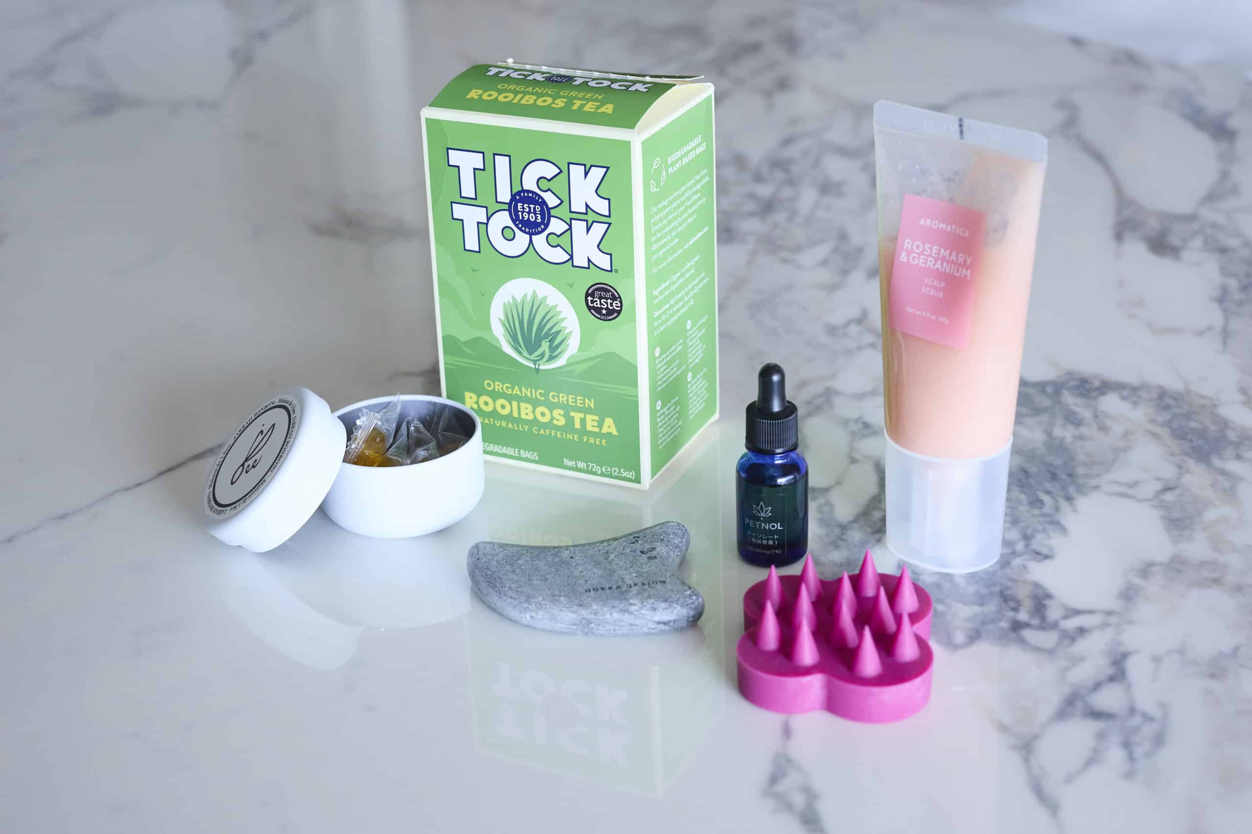 私はエネルギーを感じるものが好きです。例えば、カッサはフィンランドで生み出された天然石のソープストーン製を愛用しています。バスタイムで使うことが多いので、湯船に入れてホットストーンのように温めてから、頭皮や顔のマッサージをしています。頭皮マッサージは香りが豊かなスクラブを塗布してから行うこともあります。