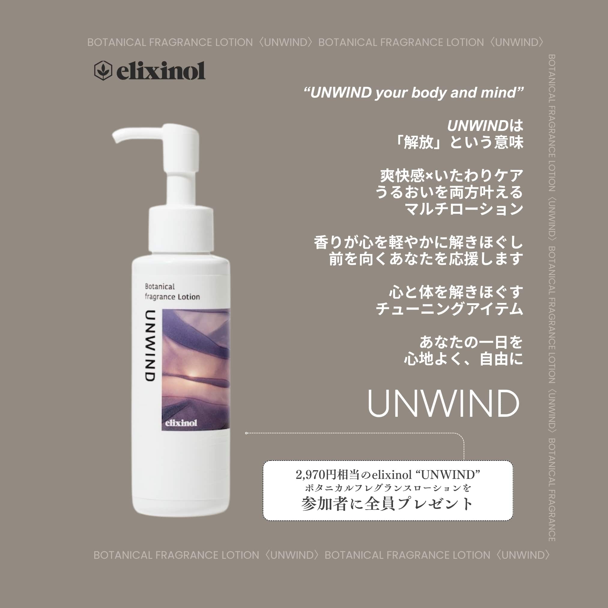 ※オンライン参加の方へのボタニカルフレグランスローション〈アンワインド〉の発送は別途ご案内させていただきます。
