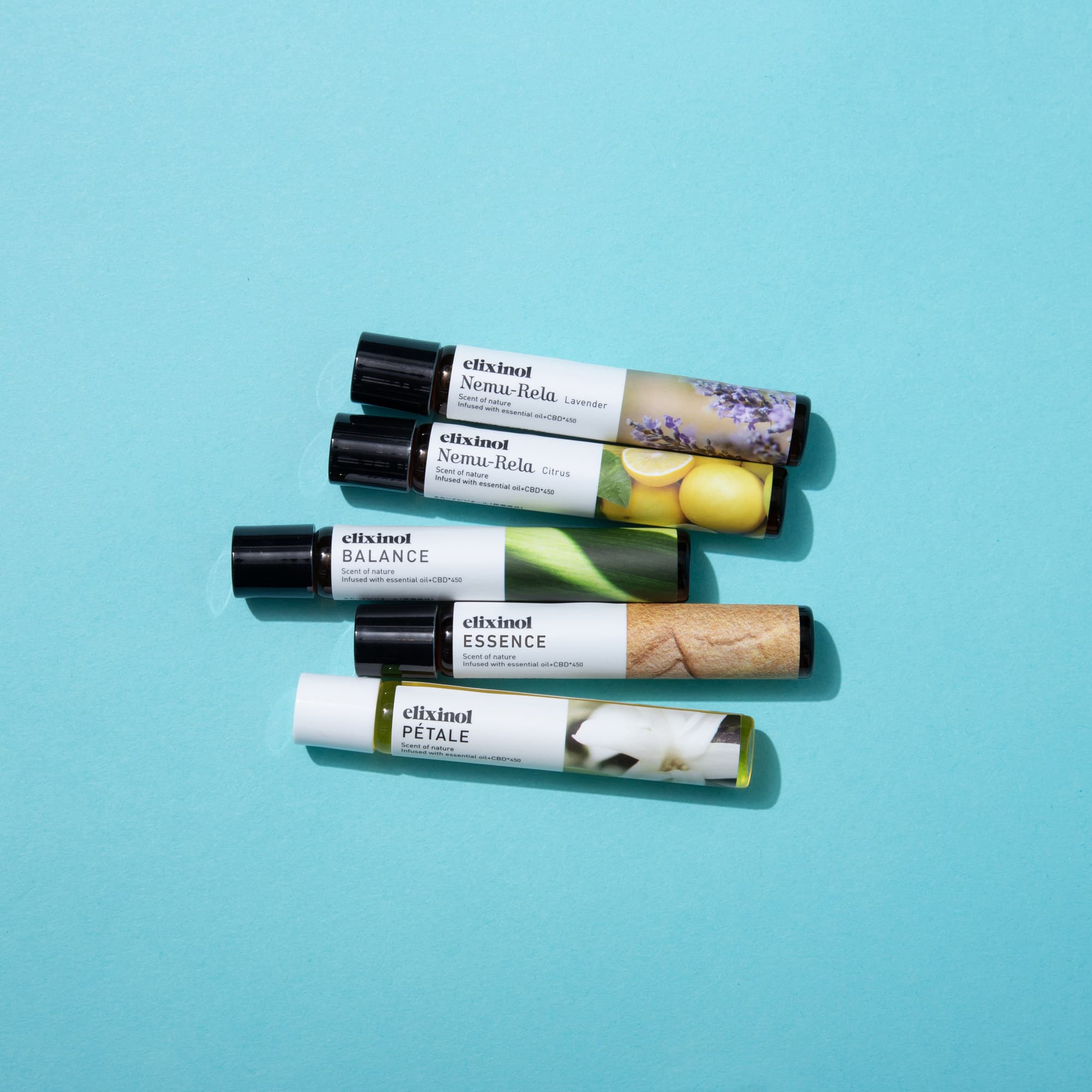 - 従来のエリクシノールのロールオンでは、プラスチックを表面に使用しておりましたが、CBDフレグランスシリーズではスリーブ式の化粧箱を採用。 外箱、内箱の全てが紙箱になりました。 これからもエリクシノールができるSDGsに取り組んでいきます。