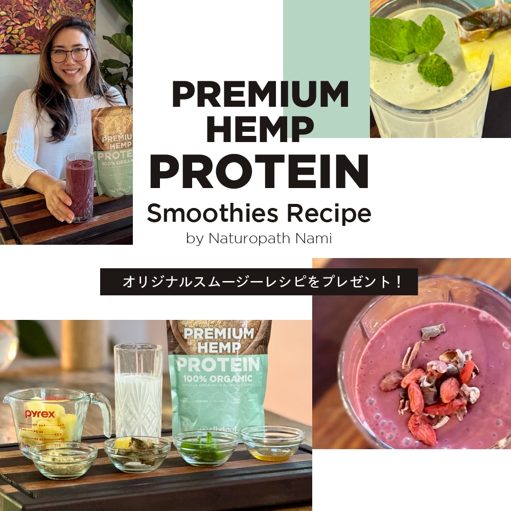 期間中にエリクシノールプレミアムヘンププロテインを購入していただいた方限定で、この特別なレシピをプレゼントいたします! 健康的なライフスタイルをサポートするスムージーを、ぜひご家庭でお試しください。